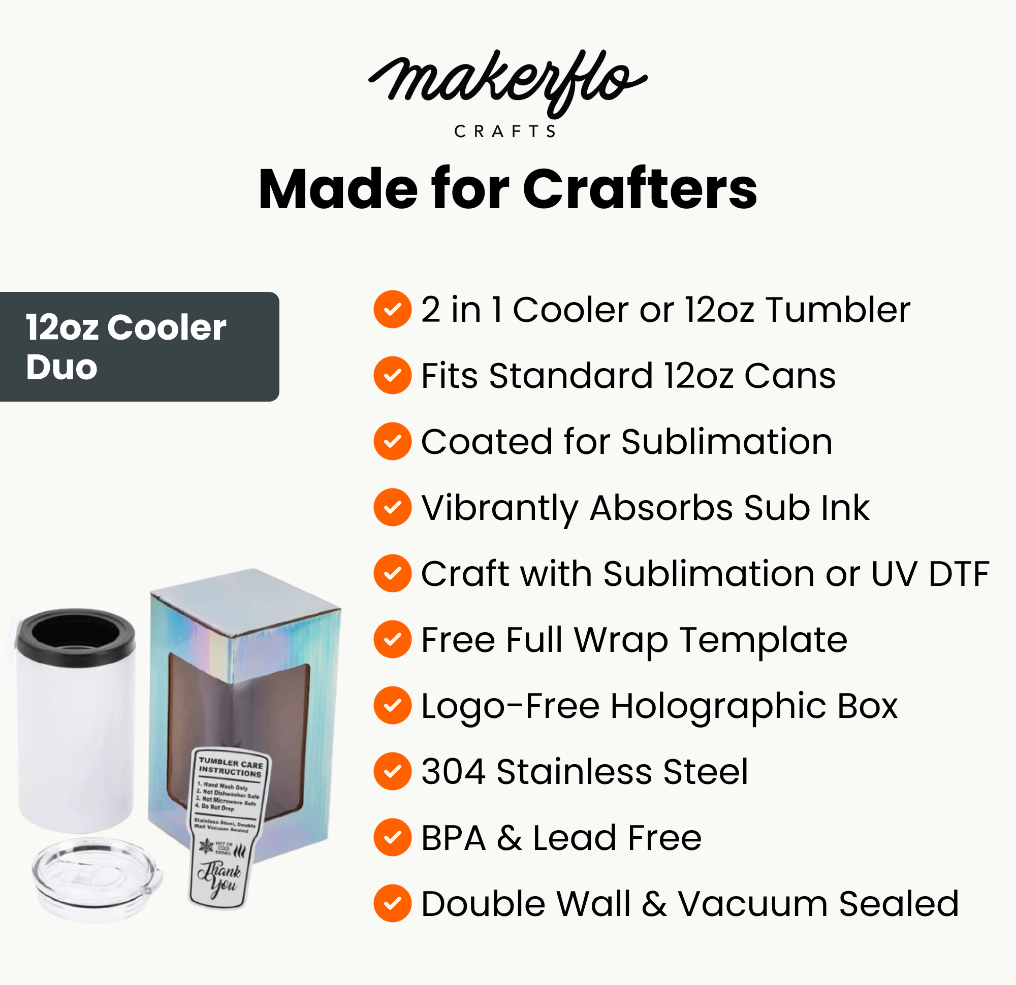 MakerFlo's 12oz Thick Duozie is a 2 in 1 product! A stainless steel can cooler, coated for sublimation to hold your favorite 12oz beverage. Fits standard 12oz beer/soda cans and standard beer bottles. It’s also a 12oz tumbler with straw and slide lid! Use your sublimation skills to create beautiful designs and enjoy a refreshing beverage in style!