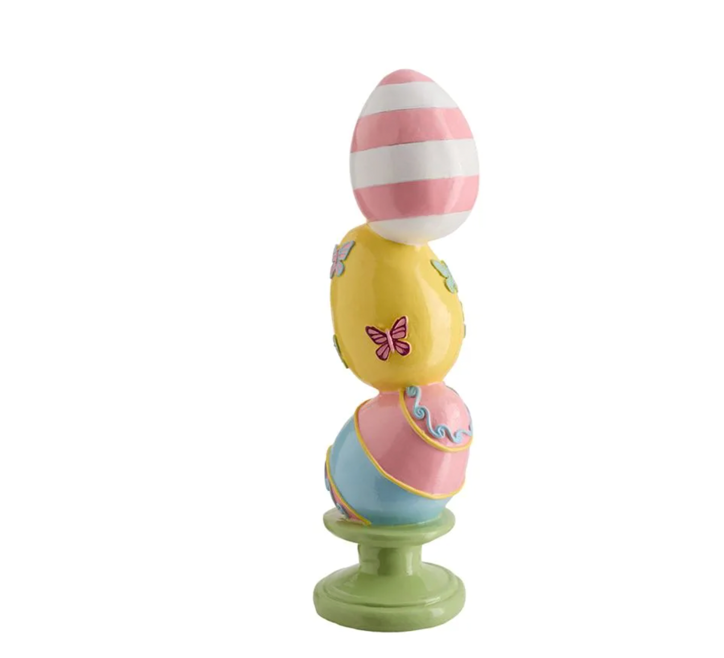 Introduce architectural interest with this striking 16" resin Easter egg stack, a sculptural piece that transcends seasonal décor. The stacked egg design creates dynamic visual movement while the resin construction ensures durability and a refined finish. This substantial accent works beautifully as a standalone statement on console tables, shelves, or entryway displays, commanding attention through its thoughtful proportions and elegant simplicity. The neutral aesthetic allows it to integrate seamlessly into various design schemes, from contemporary to traditional interiors. Ideal for those who appreciate sculptural home accents that balance playfulness with sophistication. Whether displayed during spring celebrations or maintained as a permanent fixture, this piece adds dimensional character and curated appeal to any carefully styled space.
