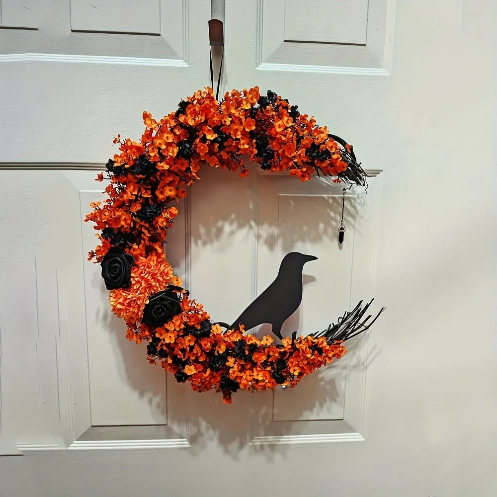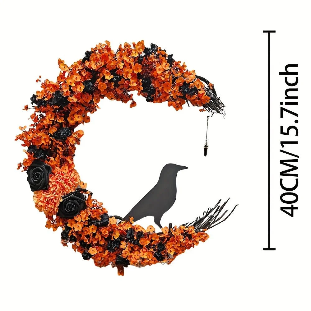 Create a haunting atmosphere this Halloween with NNETM’s Moon & Crow Wreath.